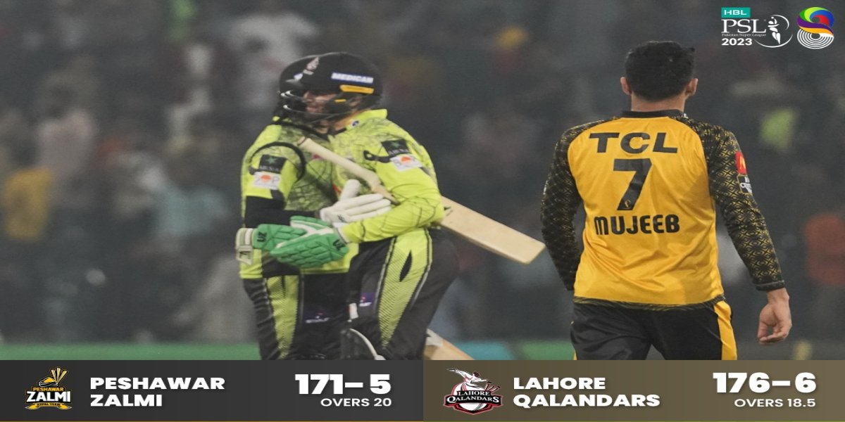 لاہور قلندرز نے پشاور زلمی کا 171 رنز کا ہدف 18.5 اوورز میں 6 وکٹوں کے نقصان پر حاصل کر لیا۔