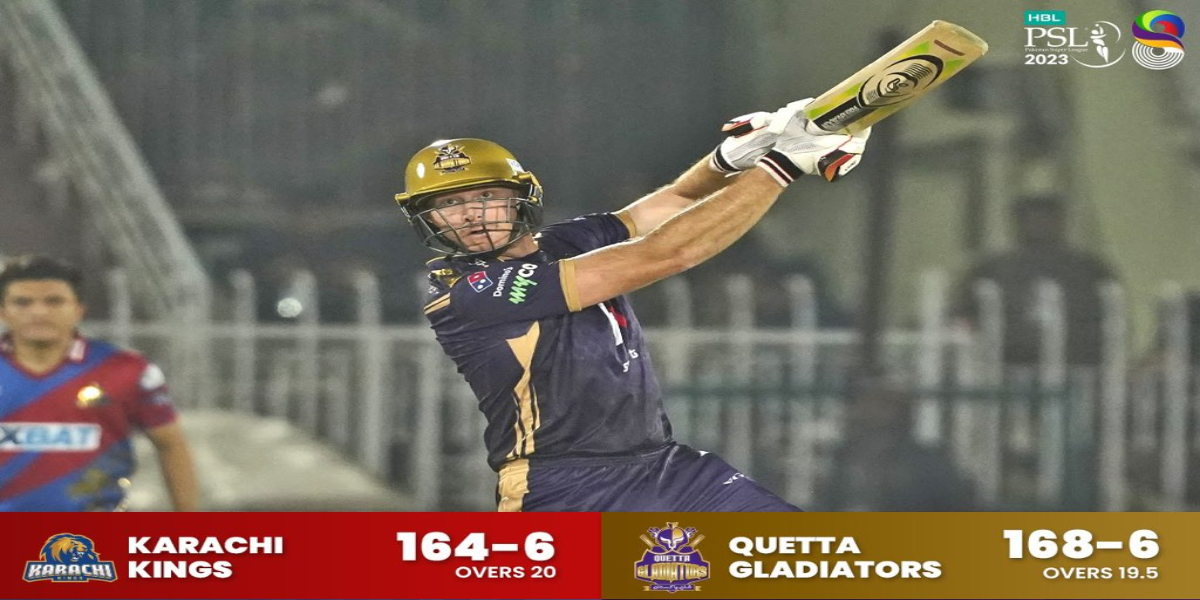 پاکستان سپر لیگ سیزن 8 کے 22 ویں میچ میں کوئٹہ گلیڈی ایٹرز نے کراچی کنگز کو 4 وکٹ سے شکست دے کر ایونٹ میں پہلی فتح حاصل کر لی۔