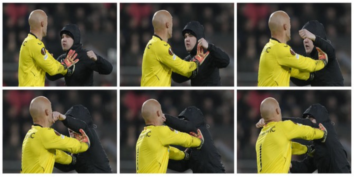 ہالینڈ میں ہونے والے یوروپا لیگ کے ایک میچ کے دوران تماشائی نے گول کیپر کو مکا مار دیا جس کے بعد اسے گرفتار کر کے دو ماہ کے لیے جیل بھیج دیا گیاْ