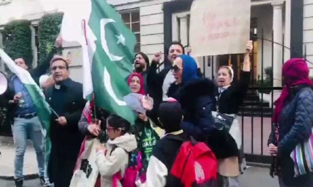 لندن میں مظاہرین نے امپورٹڈ حکومت نامنظور ،فاشٹ حکومت نامنظور کے نعرے لگئے۔