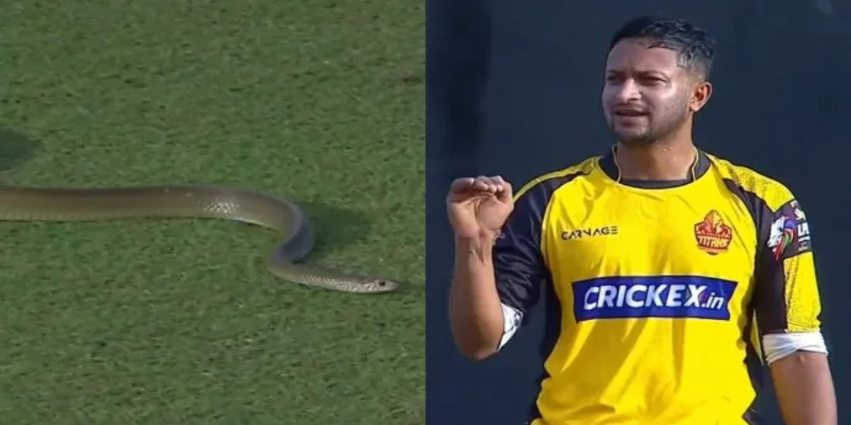 بنگلہ دیشی آل راؤنڈر شکیب الحسن نے امپائر کو ہاتھ کے اشارے سے بتایا کہ سانپ میدان میں داخل ہو چکا ہے، جس کے بعد امپائر نے کچھ دیر کے لیے کھیل روک دیا۔
