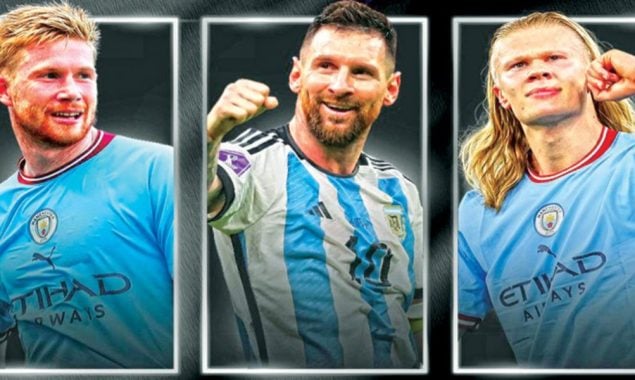 مانچسٹر سٹی کے ٹربل جیتنے والے ارلنگ ہالینڈ اور کیون ڈی برائن یوئیفا کے بہترین کھلاڑی کے ایوارڈ کے لیے ارجنٹائن کے لیونل میسی کے ساتھ شارٹ لسٹ میں شامل ہوگئے ہیں۔