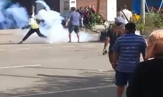 سنجامی پولیس اسٹیشن کے باہر بھی مظاہرین اور پولیس کے درمیان جھڑپیں ہوئیں جہاں پولیس نے آنسو گیس کے گولے داغے جس کے نتیجے میں تین افراد زخمی ہوئے ہیں اور انہیں اسپتال میں داخل کرایا گیا ہے۔