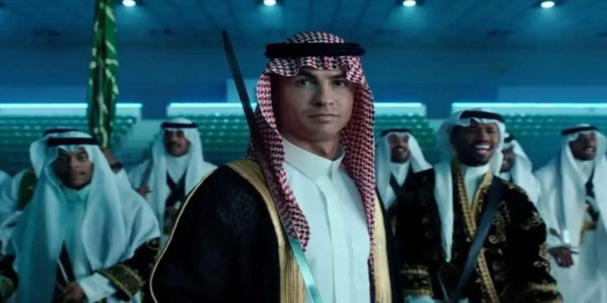 لیکن یہ کرسٹیانو رونالڈو ہیں جو اپنے ساتھیوں عبداللہ الخائیباری، مرسیلو بروزووچ اور سلطان الغانم کے ساتھ سعودی روایتی رقص کرتے ہوئے کلپ میں مرکزی مقام رکھتے ہیں۔