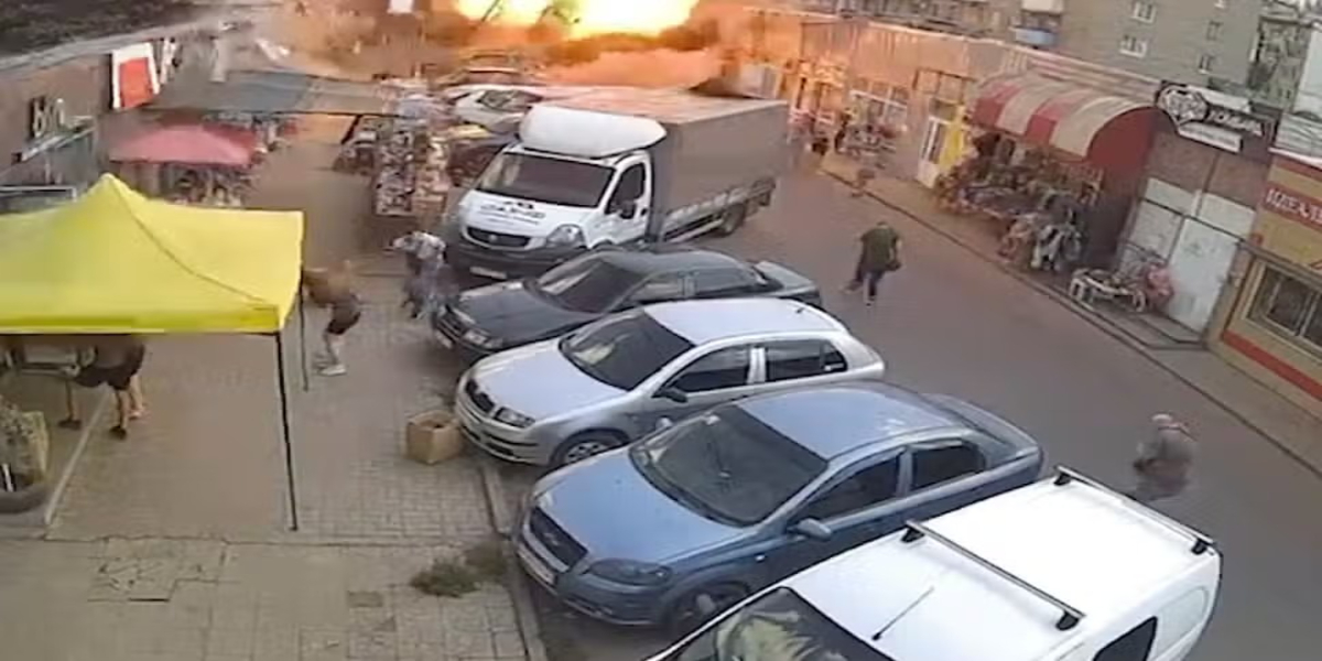 یہ ایک مصروف گلی میں ہوا جب لوگ بازار کے سٹالوں اور کیفے کی چھتوں پر جمع ہو رہے تھے۔