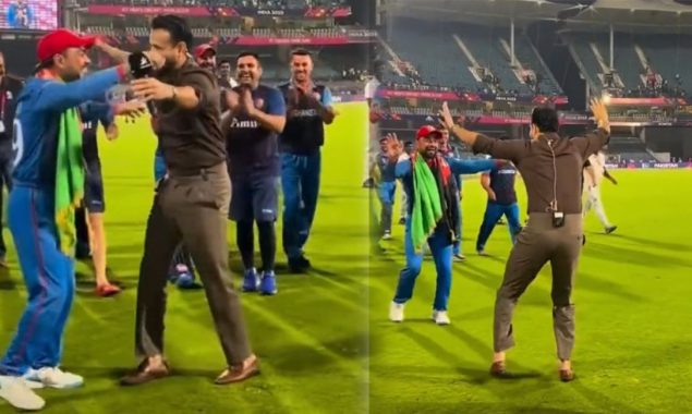 سوشل میڈیا پر وائرل ہونے والی تصاویر اور ویڈیوز میں دیکھا جاسکتا ہے کہ عرفان پٹھان مائیک کے ہمراہ افغانستان کے لیگ اسپنر راشد خان کے پاس پہنچتے ہیں اور ان کی جیت کے جشن میں شامل ہوکر ان کے ساتھ رقص کرتے دکھائی دے رہے ہیں۔