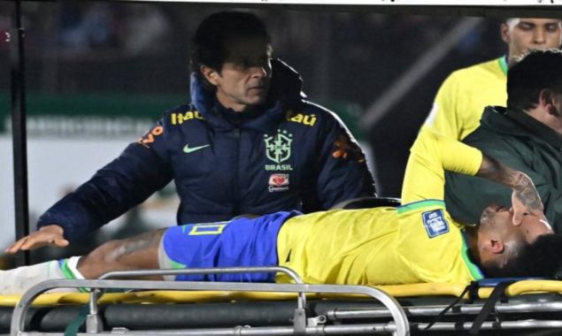 برطانوی خبر رساں ادارے کی خبر کے مطابق برازیلین فارورڈ نیمار منگل کو یورا گوئے کے ہاتھوں 2-0 کی شکست کے دوران اسٹریچر پر میدان سے باہر لایا گیا تھا۔