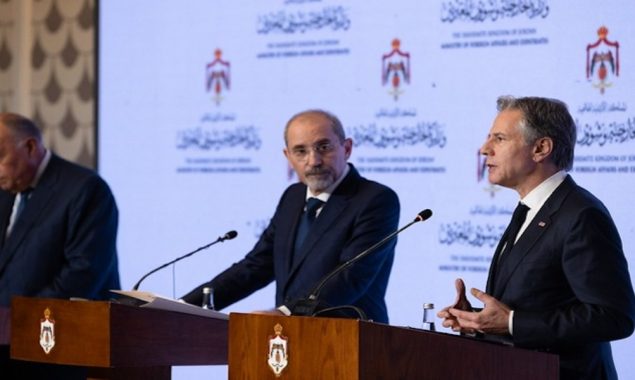عرب میڈیا کے مطابق امریکی وزیر خارجہ انٹونی بلنکن نے اردن اور مصر کی جانب سے غزہ میں فوری جنگ بندی کے مطالبے کو عمان میں عرب وزرائے خارجہ کے اجلاس میں مسترد کر دیا تھا۔