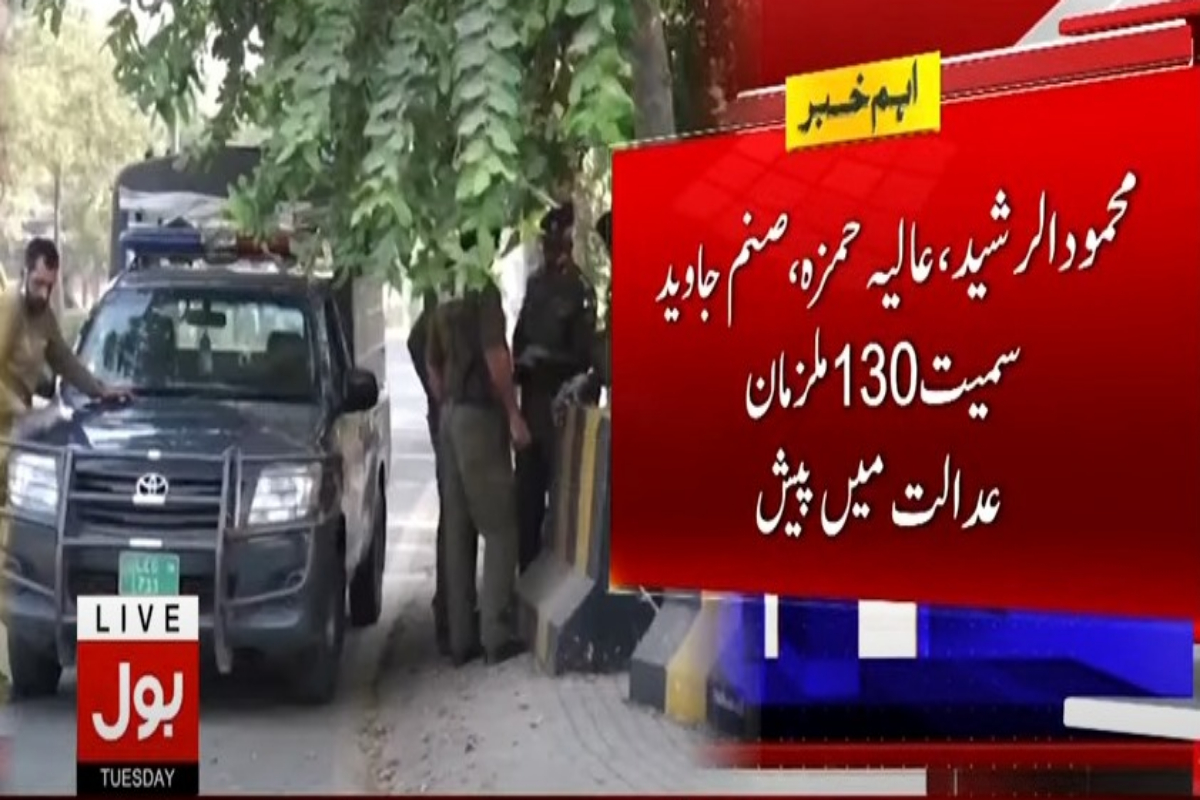 میاں محمود الرشید، عالیہ حمزہ، صنم جاوید اورطیبہ راجہ سمیت 130 ملزمان کو جیل سےعدالت میں پیش کیا گیا۔
