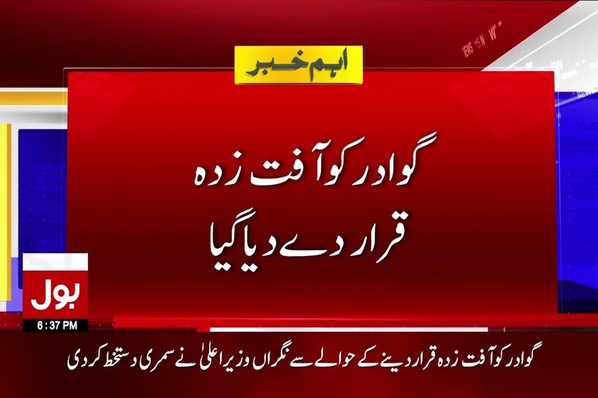 گوادر کو طوفانی بارشوں کے بعد تشویشناک صورتحال کے باعث آفت زدہ قرار دے دیا گیا۔