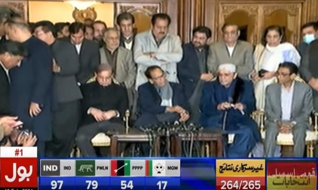 ملک میں عام انتخابات کے بعد ملک میں حکومت سازی کے لیے پاکستان پیپلز پارٹی، مسلم لیگ ن اور ایم کیو ایم نے مل کر حکومت بنانے کا فیصلہ کیا ہے۔