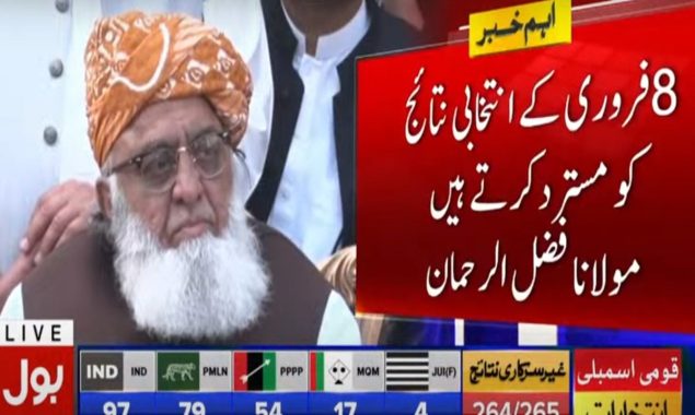 امیر جمعیت علماء اسلام ف مولانا فضل الرحمن نے کہا ہے کہ ان کی جماعت 8 فروری کے انتخابی نتائج کو مسترد کرتی ہے۔