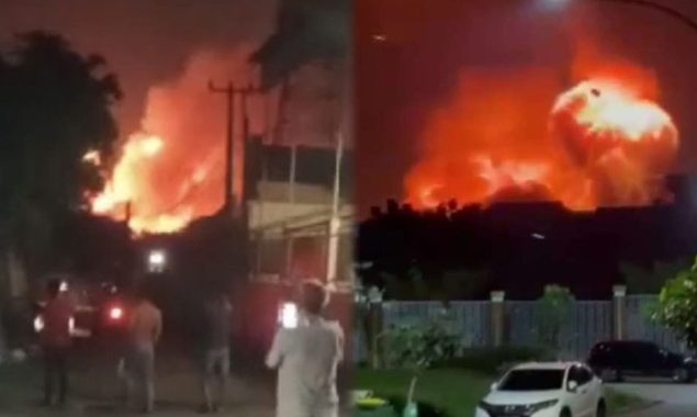 انڈونیشیا میں گولہ بارود کے ڈپو میں زوردار دھماکوں کے بعد آگ بھڑک اٹھی ہے۔