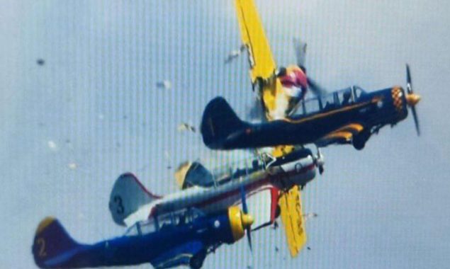 ایک تماشائی کی جانب سے بنائی گئی اور سوشل میڈیا پر پوسٹ کی گئی ایک ویڈیو میں دیکھا جا سکتا ہے کہ پرواز کے دوران چھ طیارے فضائی کرتب دکھا رہے تھے کہ اچانک ایک طیارہ دوسرے طیارے سے ٹکرا گیا اور زمین پر گر کر تباہ ہو گیا۔