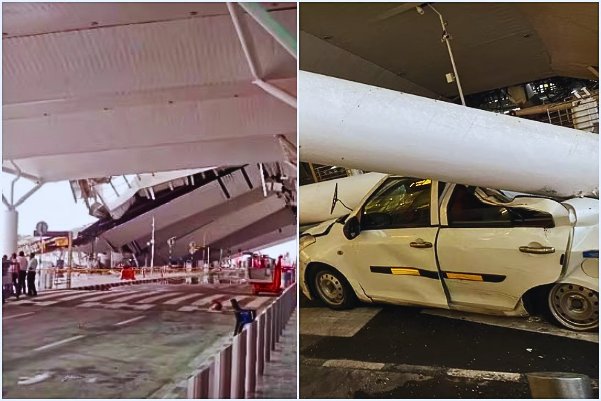 تفصیلات کے مطابق دیلی ہوائی اڈے کے ٹرمینل 1 کے ساتھ کھڑی گاڑیوں کی چھت کو سہارا دینے والے بڑے ستون گرنے سے چھت نیچے گر گئی۔