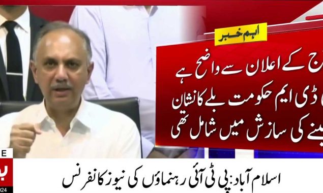 پی ٹی آئی رہنماؤں کا کہنا ہے کہ حکومت کے آج کے اعلان سے واضح ہے کہ پی ڈی ایم حکومت بلے کا نشان لینے کی سازش میں شامل تھی۔