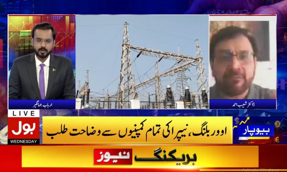 پروگرام بیوپار میں اس موضوع پر گفتگو کرتے ہوئے ماہر توانائی ڈاکٹر شعیب احمد نے کہا اوور بلنگ کے پیچھے پابچ فیکٹر ملوث ہیں۔