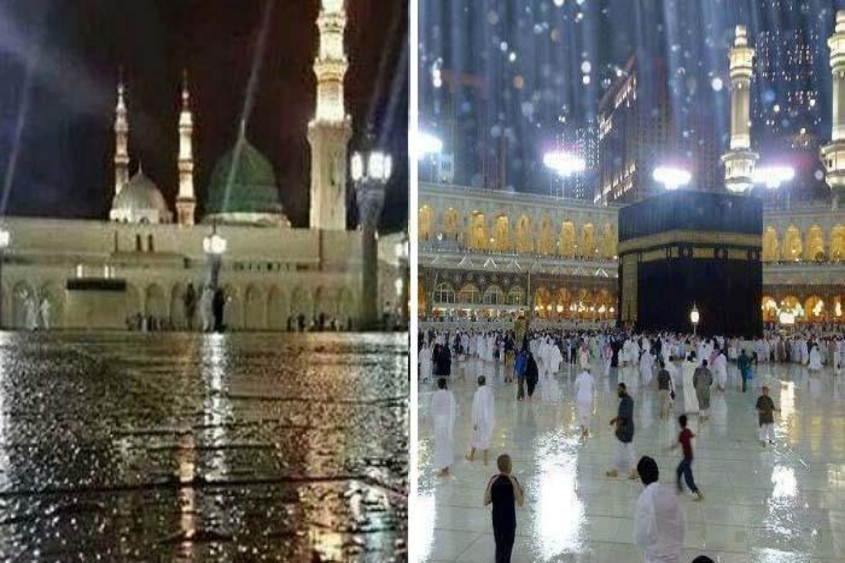 تیز ہواؤں کے ساتھ موسلادھار بارش پر عمرہ زائرین اور نمازیوں نے سجدہ شکر ادا کیا۔
