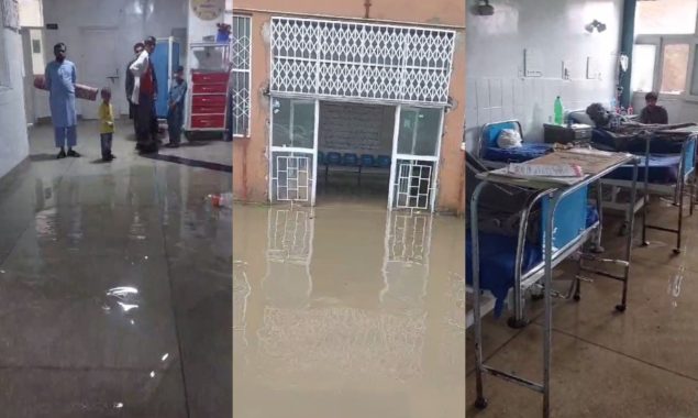 ایبٹ آباد میں موسلا دھار بارش کا پانی ایوب میڈیکل کمپلیکس کے گراؤنڈ فلور میں داخل ہو گیا۔