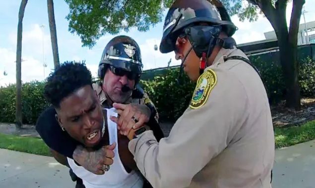 پولیس اہلکاروں نے ٹائرک ہل کو زبردستی گاڑی سے کھینچ کر ہتھکڑیاں لگا دی۔