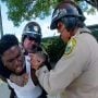 پولیس اہلکاروں نے ٹائرک ہل کو زبردستی گاڑی سے کھینچ کر ہتھکڑیاں لگا دی۔