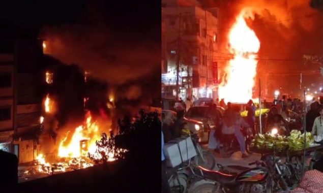 چیف فائر آفیسر اشتیاق خان کا کہنا ہے کہ آگ کی اطلاع ملتے ہی فائر بریگیڈ کی 5 گاڑیاں موقع پر پہنچ گئیں تھی عملہ آگ بجھانے میں مصروف ہے۔
