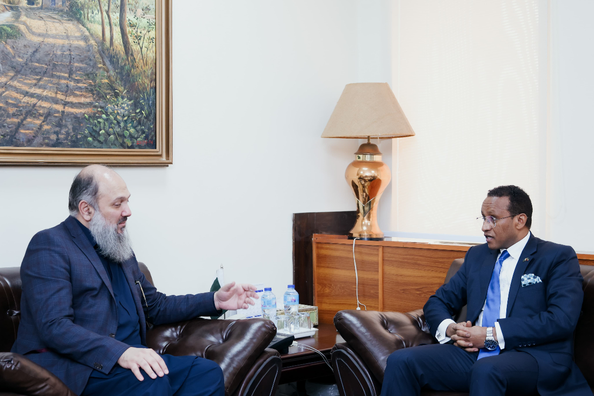 پاکستان میں ایتھوپیا کے سفیر ڈاکٹر جمال بکر عبداللہ نے وزیر تجارت جام کمال خان سے اہم ملاقات کی، جس میں دونوں ممالک کے درمیان باہمی دلچسپی کے امور پر تبادلہ خیال کیا گیا۔