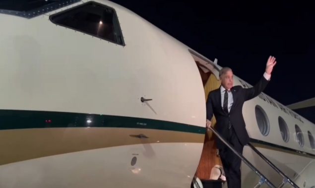 نائب وزیرِاعظم و زیرِ خارجہ اسحاق ڈار، وزیرِ اطلاعات و نشریات عطاء اللہ تارڑ اور معاون خصوصی طارق فاطمی وزیرِ اعظم کے ہمراہ ہیں.