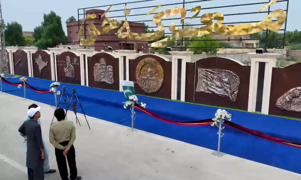 “معرکۂ حق” اسکپچر وال میں پاک افواج کی جرأت، قربانی اور دشمن کے خلاف کامیاب عسکری کارروائیوں کو بصری انداز میں اجاگر کیا گیا ہے۔