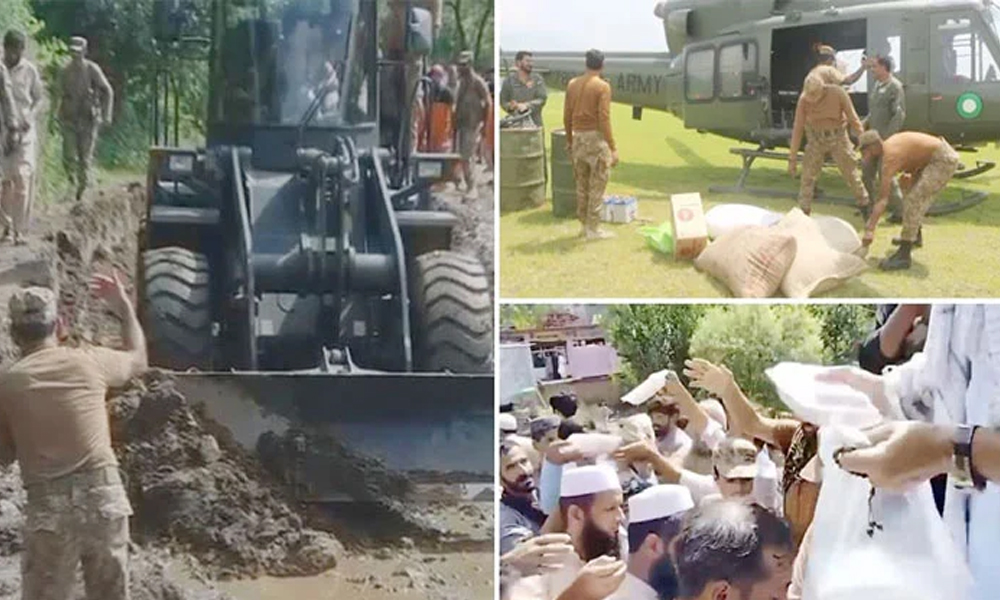 خیبرپختونخوا کے سیلاب سے متاثرہ علاقوں بونیر، سوات، شانگلہ اور صوابی میں پاک فوج کا فلڈ ریلیف آپریشن مسلسل پانچویں روز بھی بھرپور انداز میں جاری ہے۔