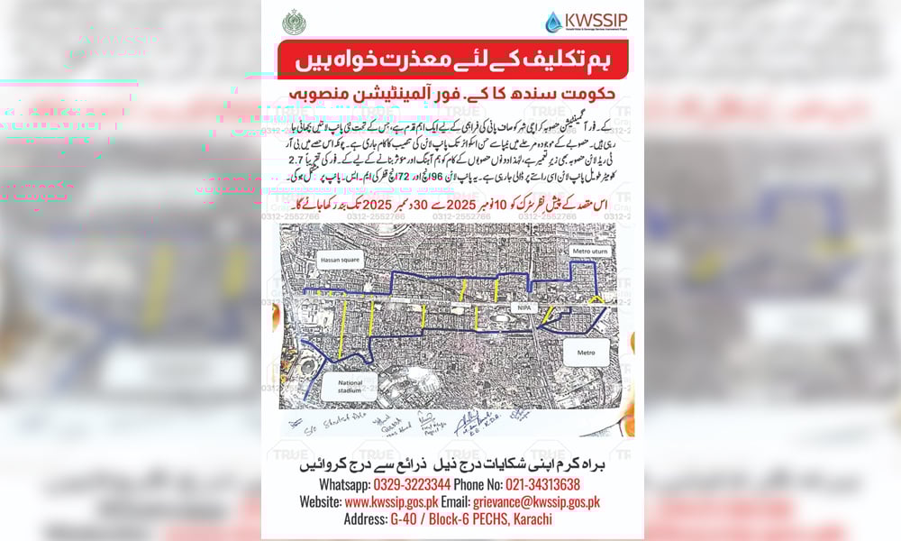 کے ڈبلیو ایس ایس آئی پی حکام کے مطابق نیپا چورنگی سے وفاقی اردو یونیورسٹی تک روڈ 10 نومبر سے لے کر 30 دسمبر تک بند رہے گا جس کی وجہ کے فور منصوبے کے تحت پانی کی نئی لائینوں کی تنصیب ہے۔
