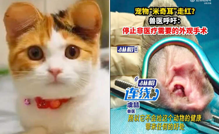 چین میں لوگ اپنے پالتو کتوں کو بہت احتیاط اور بہت محبت سے رکھتے ہیں لیکن اب ایک عجیب وغریب فیشن چل نکلا ہے، اس نئے رجحان کے تحت چینیوں کی اکثریت اپنے پاتو کتے کے کانوں کا کاسمیٹکس سرجری کے ذریعے اس طرح بنا رہی ہے تاکہ وہ مشہور کارٹون کردار مکی ماؤس کے کان کی طرح واضح اور بڑے دکھائی دے۔