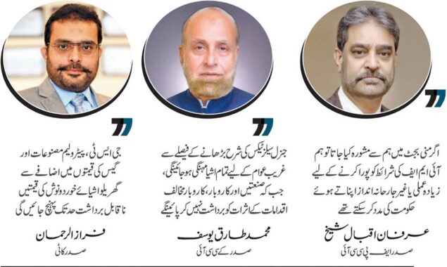 فیڈریشن آف پاکستان چیمبرزآف کامرس اینڈ انڈسٹری (ایف پی سی سی آئی) کے صدرعرفان اقبال شیخ نے نئے ٹیکسوں، بجلی اور گیس کے نرخوں میں اضافے، برآمدات پرمبنی صنعتوں کے لیے جائزمراعات کے منصوبوں سے دستبرداری، سکڑاؤ اورکساد بازاری کے اقدامات کے ذریعے معیشت کو مزید سست کرنے کے حوالے سے تاجربرادری کے مجموعی مسائل اورخدشات کا اظہارکیا۔انہوں نے کہا کہ اگربرآمدات مسلسل متاثر ہوتی رہیں توادائیگیاں توازن میں نہیں رہیں گی۔ کرنٹ اکاؤنٹ تیزی سے بگڑے گا۔ ذخائر میں اضافہ پیچیدہ رہے گا۔ انہوں نے مزید کہا کہ ریونیو کا ہدف حاصل کرنا مشکل ہوگا اورروزگار کے مواقع کی پیداوارسب سے کم رہے گی۔