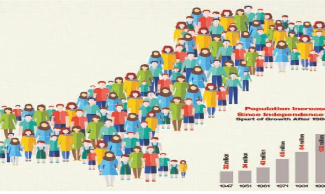 1951 میں پاکستان کی آبادی 30 ملین  تھی ۔  2022 میں ملک کی آبادی  بڑھ کر  220 ملین ہو گئی ۔ آبادی میں حیران کن طور پر6  گنا اضافے نے پاکستان کو دنیا کے 5 ویں  سب سے زیادہ آبادی والے ملک  کے نمبر  پرپہنچادیا ۔ مشرقی پاکستان  سے  علیحدگی کے ایک دہائی بعد 1951 میں پاکستان سب سے زیادہ آبادی والے ممالک کی فہرست میں 13 ویں جبکہ  1981 میں 8ویں  نمبر پر تھا۔ پاکستان میں خاندانی منصوبہ بندی کا پروگرام پڑوسی اور علاقائی ممالک کے مقابلے میں  بہت پہلے شروع ہو چکاتھا  لیکن  دیگر اقدامات کی طرح یہ  پروگرام بھی وقت گزرنے کے ساتھ ساتھ اپنی رفتار کھوتا چلا گیا۔ نتیجہ  یہ  ہوا کہ  آبادی میں  تیزی  سے اضافہ ہوتا   چلا گیا جس کی وجہ سے   آج ہمارے وسائل پر  دباؤ واضح طور پر نظر آرہا ہے ۔ ملک میں  سالانہ 11 ہزار  اموات صرف زچگی کے دوران  ہورہی ہیں ۔ 62 شیر خوار بچے ایک سال کی عمر تک پہنچنے سے پہلے ہی  دنیا  سے منہ موڑ لیتے ہیں ۔  5 سال سے کم عمر 40 فیصد بچوں کی نشوونما ہوپاتی ہے جبکہ پاکستان میں 5 سے 16 سال عمر  کے درمیان ہر 3 میں سے ایک بچہ اسکول نہیں جاتا ۔