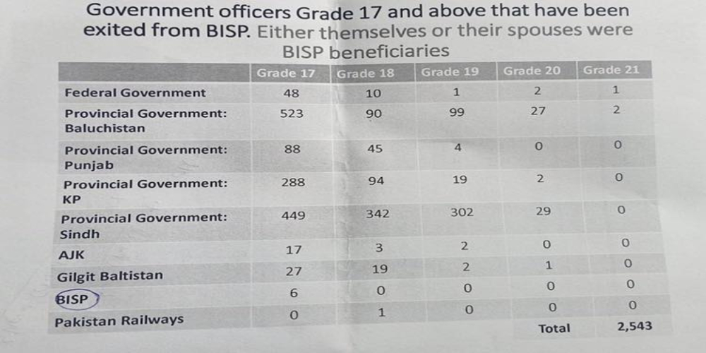 تفصیلات کےمطابق  پاکستان کی بیوروکریسی کےسندھ اور بلوچستان 17 سے 21 گریڈ تک  کےافسران  بینظیر انکم سپورٹ پروگرام کےتحت وظیفہ  حاصل کرتےہیں۔