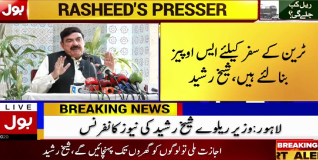 وفاقی وزیر ریلوے نے آگاہ کیا کہ ٹکٹ ہولڈر ہی اسٹیشن اسکے گا اور اس کے ساتھ ہی خفاء بھی ہوئے کہ بسیں چلانے اور جہاز اڑانے کی اجازت دی جا رہی ہے لیکن ریل کا پہیہ روکنا سمجھ سے بالاتر ہے ، یہ آدھا تیتر آدھا تیتر بٹیر سمجھ نہیں آرہا ہے۔