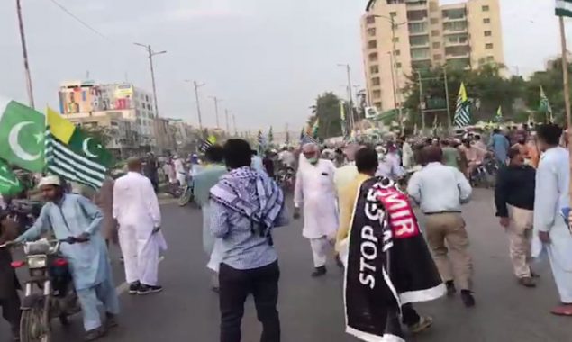 تفصیلات کے مطابق کراچی کے علاقے گلشن اقبال میں بیت المکرم مسجد کے قریب جماعت اسلامی کی کشمیر ریلی میں کریکر حملہ ہوا۔