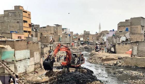 شہرقائد میں گجر نالے کے گرد تجاوزات ہٹانے کا آپریشن تیسرے روز بھی جا رہی ہے۔