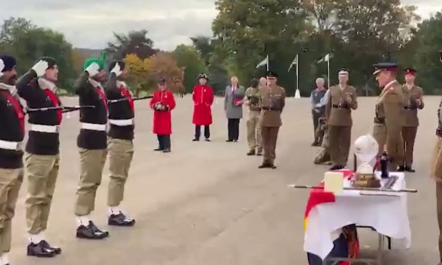 پاک فوج کے شعبہ تعلقات عامہ (آئی ایس پی آر) کے مطابق پاک فوج کی ٹیم نے رائل ملٹری اکیڈمی ، برطانیہ کے زیر اہتمام پیس اسٹیکنگ مقابلے کے نام سے مشہور عالمی فوجی ڈرل کا مقابلہ جیت لیا۔