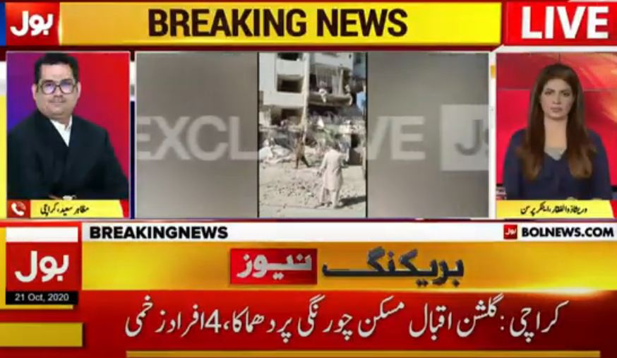 کراچی کے علاقے گلشن اقبال میں مسکن چورنگی کے قریب 2 منزلہ عمارت میں بم کا دھماکا ہوا ہے۔