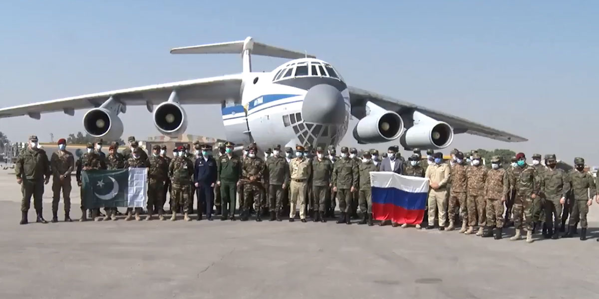 روسی مسلح افواج کا دستہ دروزبہ فائیو مشقوں میں شرکت کے لیے پاکستان پہنچ گیا۔