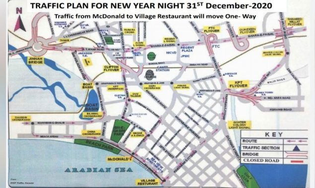 سال نو کے موقع پر کراچی پولیس کی جانب سے ٹریفک پلان جاری کر دیا گیا ہے۔