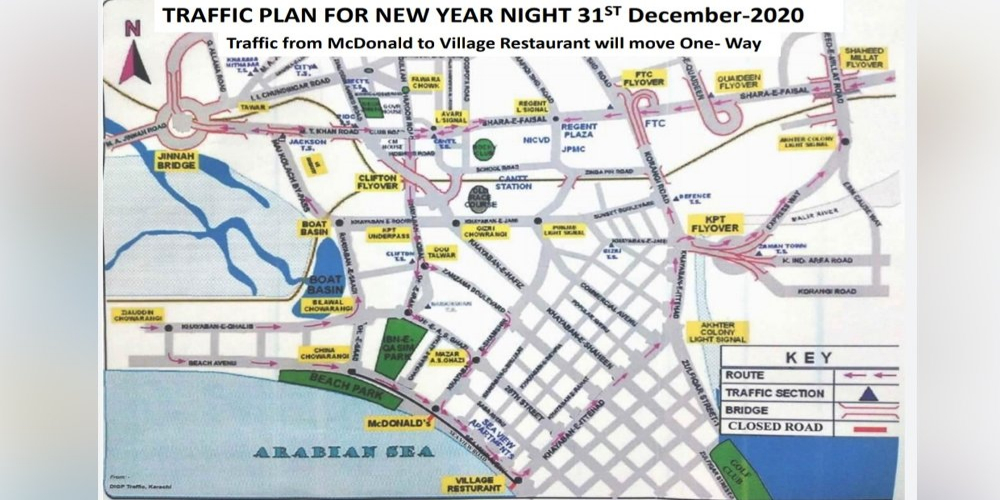 سال نو کے موقع پر کراچی پولیس کی جانب سے ٹریفک پلان جاری کر دیا گیا ہے۔