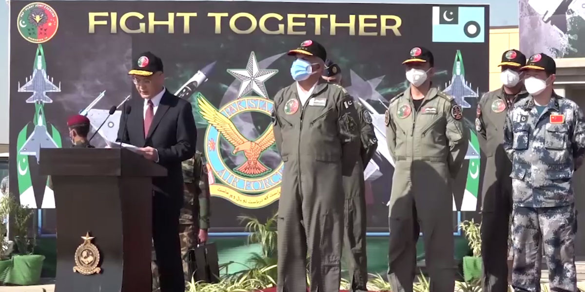 تقریب کے شرکا سے خطاب کرتے ہوئے سربراہ پاک فضائیہ ایئر چیف مارشل مجاہد انور خان نے کہا کہ موجودہ عالمی سیکیورٹی حالات اور ائیر وار فیئر کی بدلتی ہوئی صورتحال کے پیشِ نظر نہ صرف پاکستان اور چین بلکہ دونوں ممالک کی افواج کے مابین بھی شراکت داری میں اضافہ وقت کی اہم ضرورت ہے۔