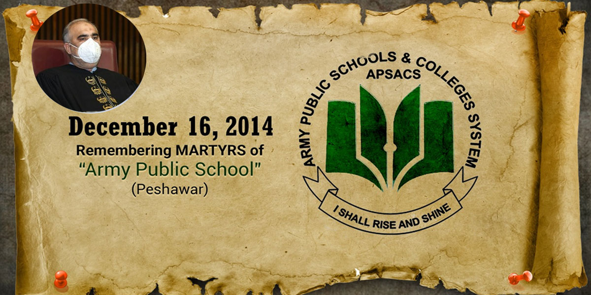 سانحہ آرمی پبلک اسکول پشاور کی چھٹی برسی شہید بچوں اور اساتذہ کو خراج تحسین پیش کرتا ہوں۔16 دسمبر کا دن پاکستان کی تاریخ کا سیاہ ترین دن تھا۔وہ سانحہ آج بھی ہمیں ان ننھے پھول جیسے بچوں کی یاد دلاتی ہیں۔ہم سانحہ #APS میں شہید ہونے والے بچوں کے خون کو کبھی رائیگاں نہیں جانے دینگے۔ pic.twitter.com/CBmifgpUsK