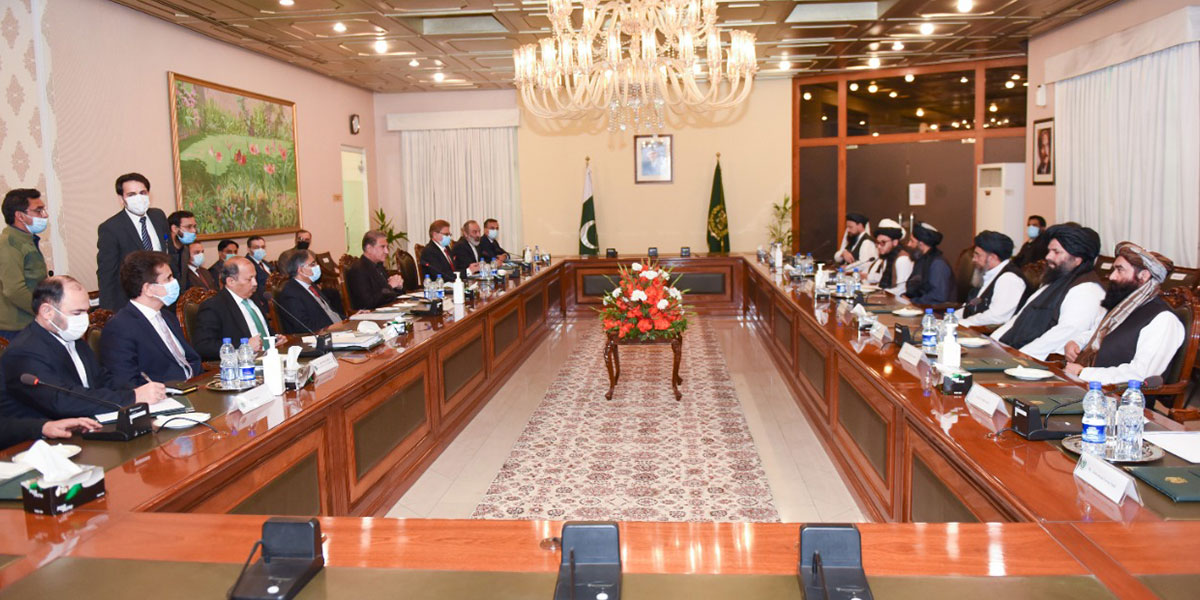 تفصیلات کے مطابق افغان طالبان سیاسی کمیشن کے وفد نے ملا عبدالغنی برادر کی سربراہی میں وزارت خارجہ میں وزیر خارجہ شاہ محمود قریشی سے ملاقات کی۔