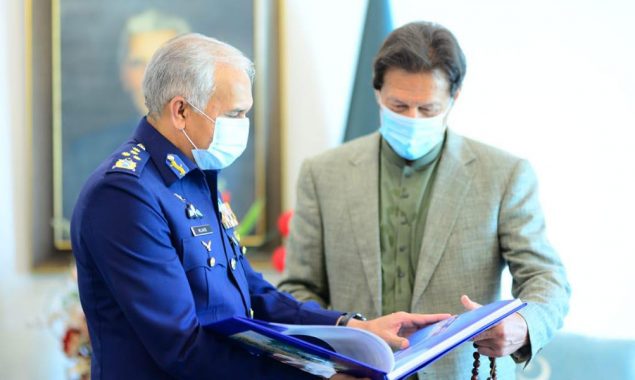 پاک فضائیہ کے سربراہ کی وزیراعظم سے الوداعی ملاقات ہوئی ہے۔