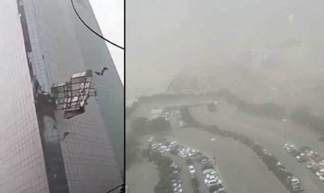 راشد منہاس روڈ پر واقع شاپنگ مال میں سائن بورڈ گرگیا۔ دیگر حادثات میں بھی متعدد افراد زخمی ہوئے جنہیں طبی امداد کے لیے مختلف اسپتالوں میں منتقل کردیا گیاہے۔