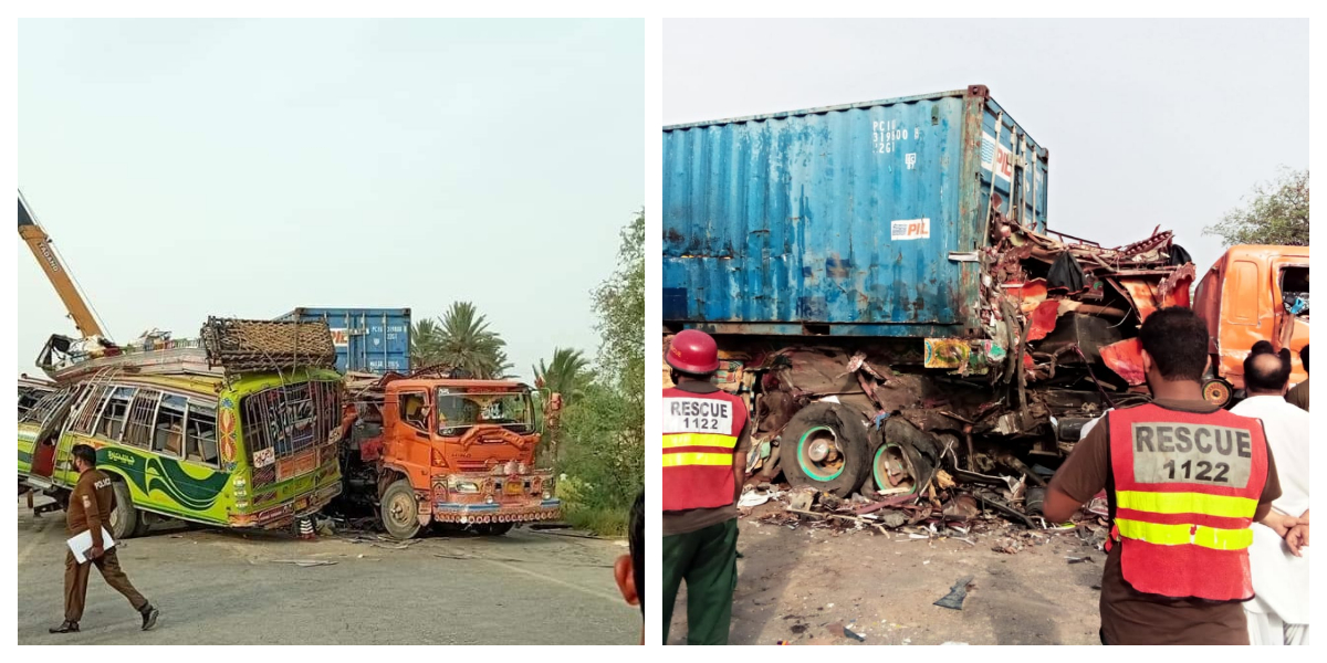 ڈیرہ غازی خان : مسافر بس اور ٹرک کے درمیان خوفناک تصادم، 87 افراد زخمی