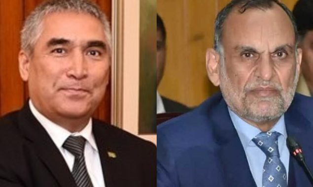 وفاقی وزیر ریلوے محمد اعظم خان سواتی کی ترکمانستان کے سفیر عطادجان مولوامو سے ملاقات ہوئی ہے۔